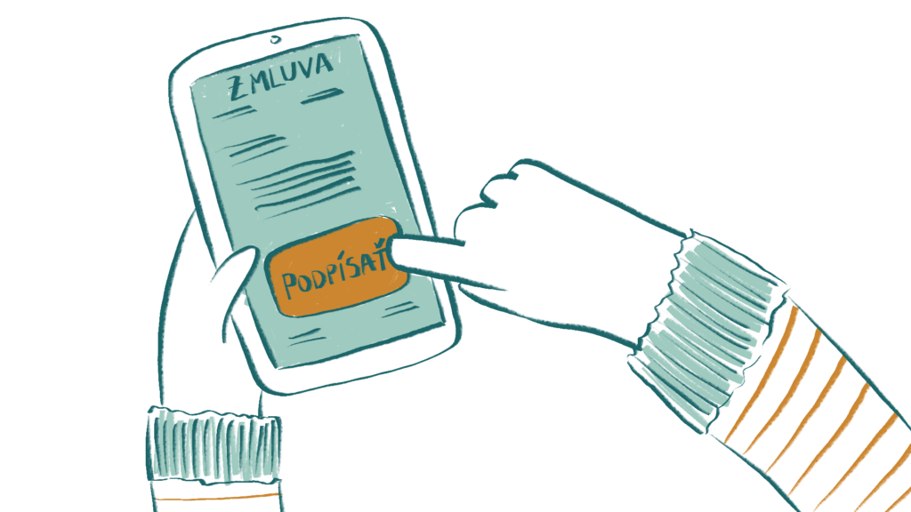 Podstatné je, že písomná forma sa v zmysle § 40 ods. 4 Občianskeho zákonníka považuje za zachovanú aj vtedy, ak je zmluva podpísaná takými elektronickými prostriedkami, ktoré umožňujú zachytenie obsahu zmluvy a určenie osoby, ktorá právny úkon urobila. Inak povedané, za zmluvu uzavretú v písomnej forme sa považuje aj zmluva podpísaná elektronickým podpisom. V prípade uzatvárania zmluvy prostredníctvom mobilnej aplikácie to vyžaduje, aby úkon, ktorý klient pri akceptovaní zmluvy uskutočnil, bolo možné kvalifikovať ako elektronický podpis.